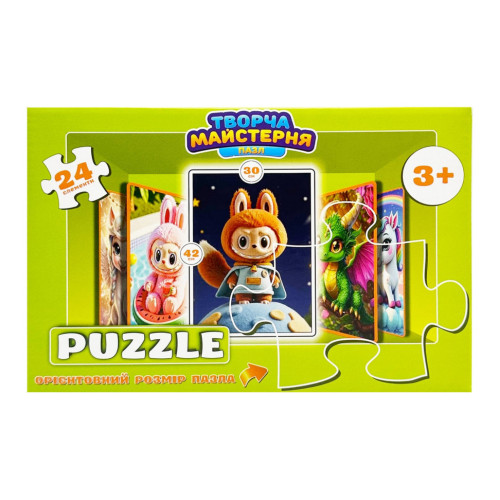 В наборе 24 элемента, из которых можно собрать изображение размером 30х42 см.