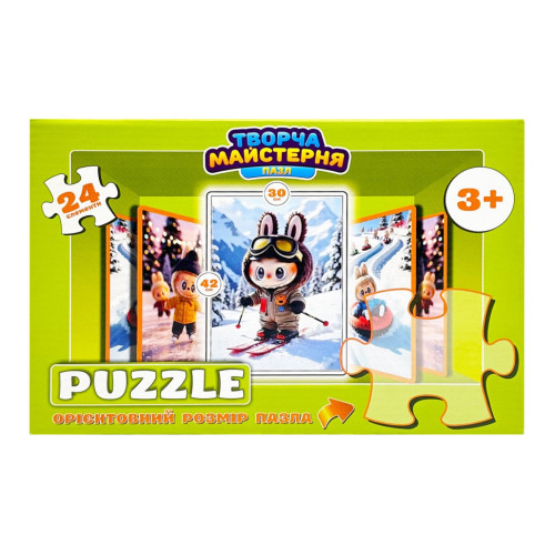Детские пазлы "Лабубу на лыжах" Puz-M-10, 24 элемента, размер 30х42 см