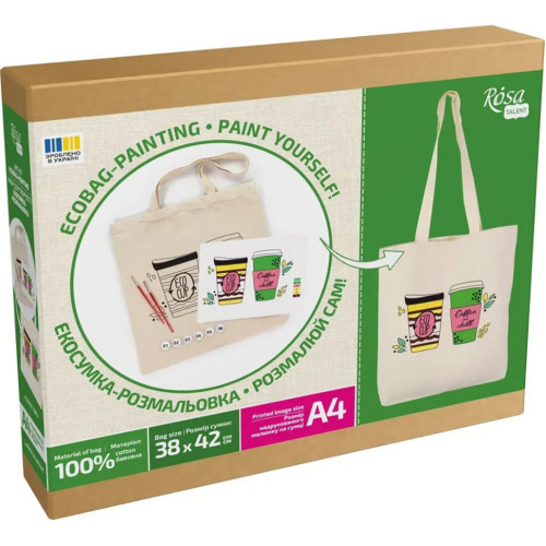 Сумка-шопер хлопчатобумажная Rosa Talent "Coffee Time" – экологичная и стильная сумка для покупок или повседневного использования. Особенностью является возможность раскраски, позволяющей создать уникальный дизайн.