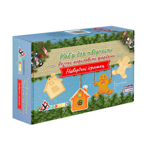 В наборе: 2 основы из фанеры с нанесёнными контурами, набор акриловых красок из 6 цветов, кисточка и люрексовый шнур. Готовые игрушки можно повесить на ёлку или использовать для декора интерьера. Подходит для детей от 6 лет, развивает аккуратность, внимание и творческие навыки.