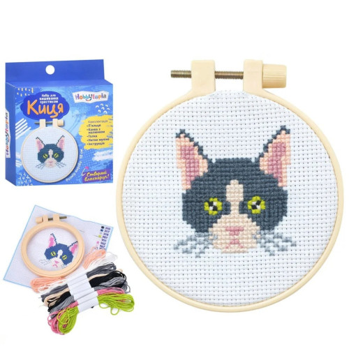 УЦЕНКА!!! Набор для вышивания крестиком "Кошка" Limo Toy M 5866 UA-UC пяльца размером 9,5 см