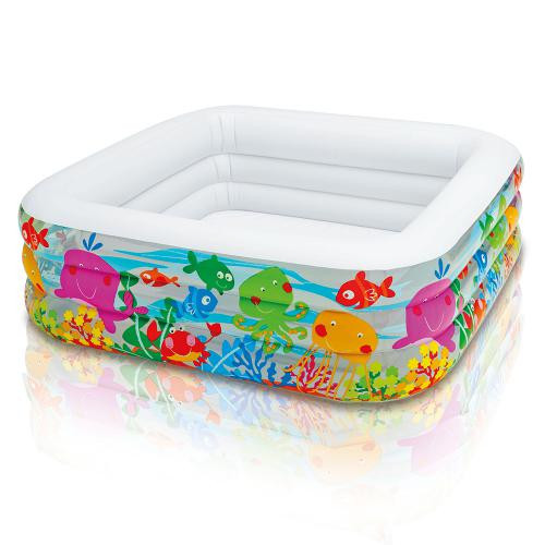 Детский надувной бассейн Intex 57471 «Аквариум» квадратной формы и прозрачными вставками, наполненными рисунками морской тематики. Стенки бассейна из светлого винила имеют прозрачные вставки-окошки, через них просвечивает подводный мир красочного аквариума. В бассейне хватит места не только для вашего ребенка и его друзей, но также для папы или мамы– ведь вместе всегда веселей! Бассейн имеет 3 отдельные надувные секции с двойными клапанами, это облегчает и ускоряет установку и сборку. Дно имеет клапан для быстрого слива. Бассейн изготовлен из прочного винила нового поколения выдерживает сильные прыжки и нагрузки от падений. Такой детский бассейн украсит любой дачный участок и порадует в зной ваших малышей.