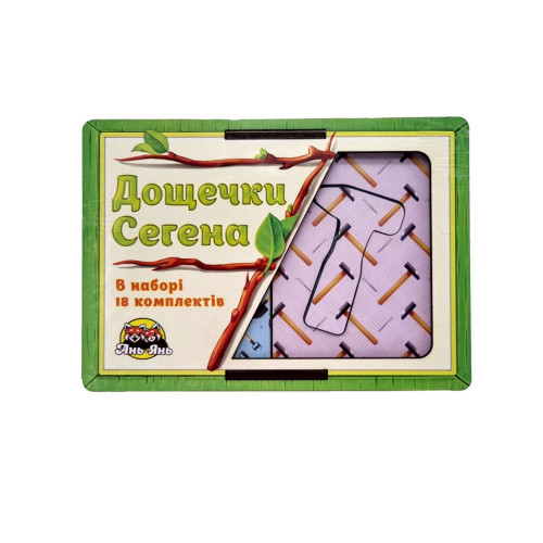 В коробке: 18 досточек с рисунками разных видов инструментов. Предложите малышу найти каждому свой "домик-рамочку". Обратите внимание ребенка на то, что каждый вкладыш должен совпасть с нужным "домиком" не только по форме, но и по рисунку. Найдите с ребенком одинаковые доски с вкладышами молотка, топоры, лопаты, отвертки, ключа или пилы.