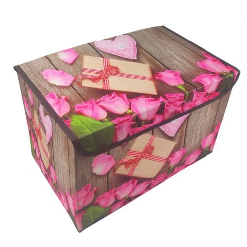 Корзина прекрасно подходит для компактного хранения как детских игрушек так и других вещей. В сложенном виде изделие не занимает много места, удобно складывается и раскладывается. Корзина закрывается сверху крышкой на липучке.