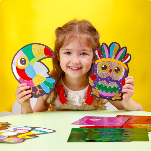 Окунитесь в мир творчества и вдохновения вместе с креативным набором голографической фольги от Vladi Toys! Добавьте сияние и цвет картинкам с изображениями разных птиц.
