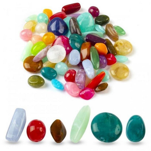 Акриловые бусины, имитирующие натуральный камень, в ассортименте форм и цветов. Благодаря высокому качеству материала, они легкие, прочные и визуально не отличаются от настоящего камня. Поверхность гладкая, с красивым блеском или мраморной текстурой, каждая бусина имеет уникальный узор.