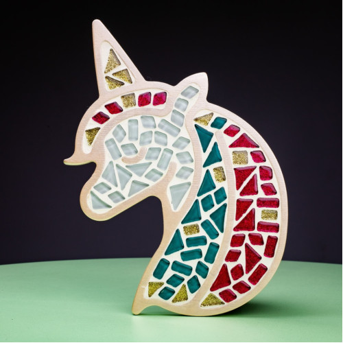Детали мозаики изготовлены из переработанного стекла, а основа – из МДФ. Они приятны на ощупь, удобны и безопасны в работе.