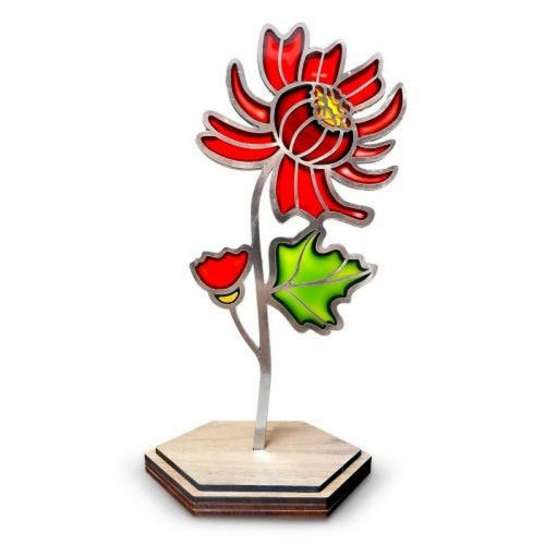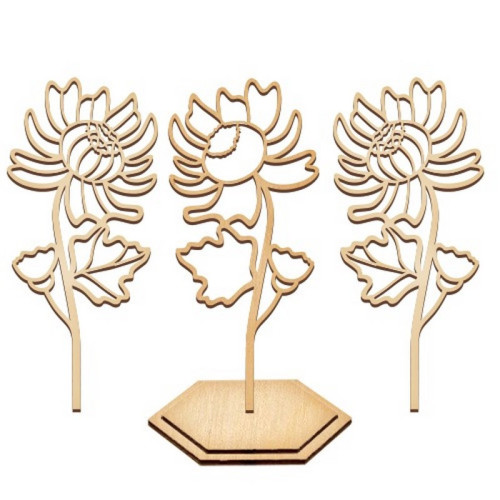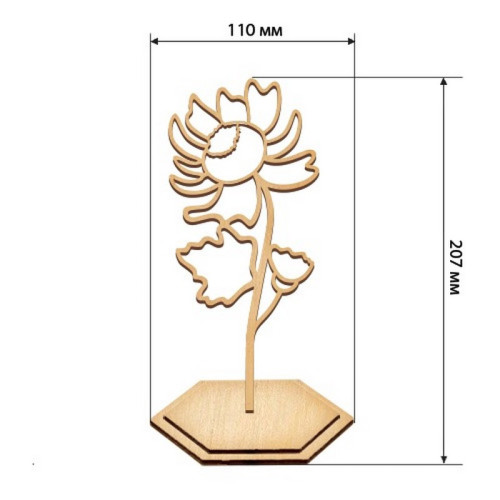 ✓ Деревянная основа из МДФ: устойчивая фигурка хризантемы высотой 20,7 см с подставкой.