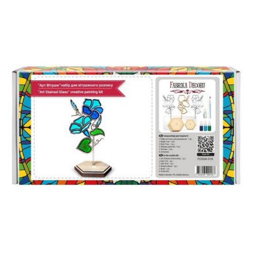 В комплект входит все необходимое: контурная заготовка из МДФ, подставка, краски Deco Glass, кисточка, деревянная палочка и подробная инструкция. Создать собственный витраж легко даже без опыта.