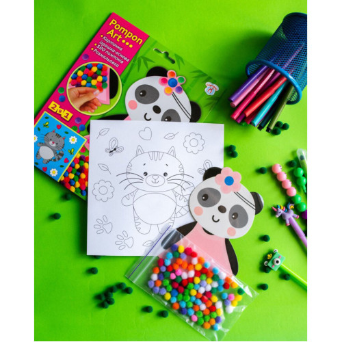 Набор для творчества Панда Pompon Art 10100691, 100 помпонов и раскраска