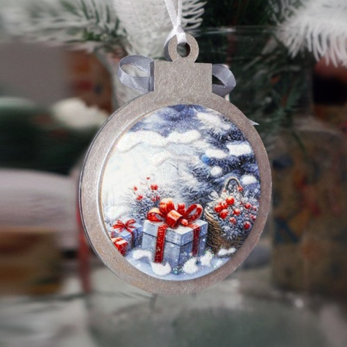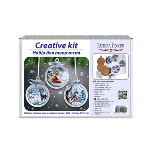 Творческий набор «Winter Forest» для создания трех двусторонних елочных украшений.