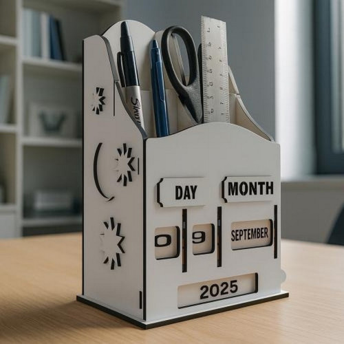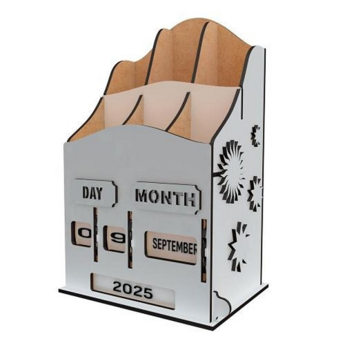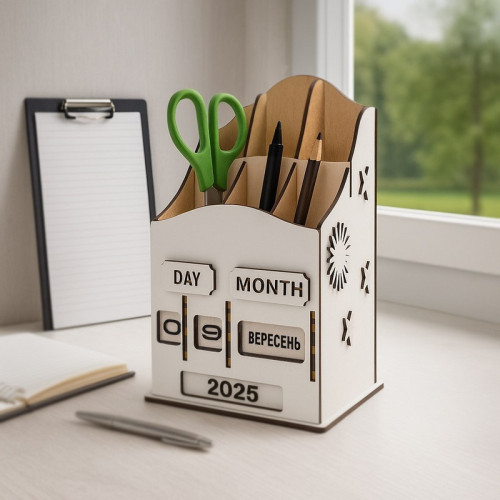 Это не просто органайзер для ручек и канцтоваров. Стильный, с винтажной ноткой вечный календарь от Fabrika Decoru, который станет настоящим украшением вашего стола. Он послужит и функциональным аксессуаром, и оригинальным подарком для близких. Забудьте о приевшихся кубиках! Уникальный механизм на колесиках позволяет устанавливать дату — день, месяц и год — простым вращением. Управлять временем ещё никогда не было так просто!