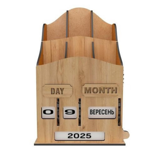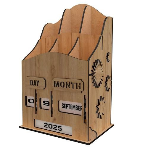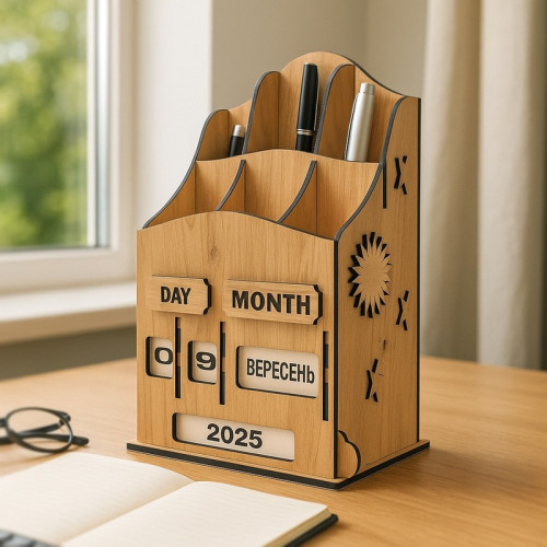 Это не просто органайзер для ручек и канцтоваров. Стильный, с винтажной ноткой вечный календарь от Fabrika Decoru, который станет настоящим украшением вашего стола. Он послужит и функциональным аксессуаром, и оригинальным подарком для близких. Забудьте о приевшихся кубиках! Уникальный механизм на колесиках позволяет устанавливать дату — день, месяц и год — простым вращением. Управлять временем ещё никогда не было так просто!