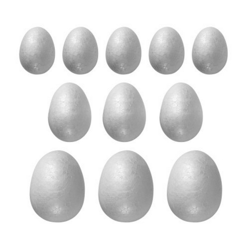Набор пенопластовых заготовок от SANTI в форме яйца – это замечательный элемент декора! Материал позволяет использовать самые разнообразные техники хендмейда, а также художественного творчества. Различные по размеру, форме и тематике пенопластовые заготовки SANTI прекрасно подходят для творческих занятий со взрослыми и детьми. Для каждого изделия в комплекте идет крепление и шнурок для подвешивания. Характеристики: - количество штук в упаковке: 11; - длина: 5 см-5шт, 6 см-3шт, 7 см-3шт; - ширина: 3,1 см, 3,8 см, 4,4 см соответственно; - 3 комплекта крепления; - цвет белый. Пенопластовые заготовки SANTI можно обработать в технике декупаж, раскрасить художественными красками или наполнить мелким декором и подвесить. Готовое изделие украсит любой интерьер, а также сохранит красоту на долгие годы.