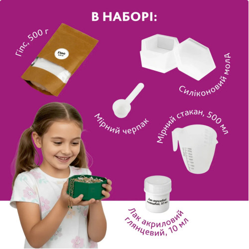 Создайте собственноручно изящную шкатулку для украшений из гипса с помощью творческого набора, в котором собрано все необходимое для увлекательного процесса. Такой набор подходит как для взрослых, так и для детей под наблюдением взрослых, а также станет отличным вариантом для первых шагов в декоративном литье. В результате вы получите не только красивое изделие, но и удовольствие от творчества.