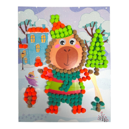картинка с клеевым слоем для помпонов (размер 200×250 мм) - 1 шт;
