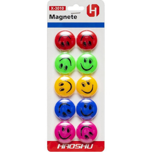 Магнит для доски "Смайлик". Диаметр: 3 см. На блистере 10 штук размер 20,5*8см