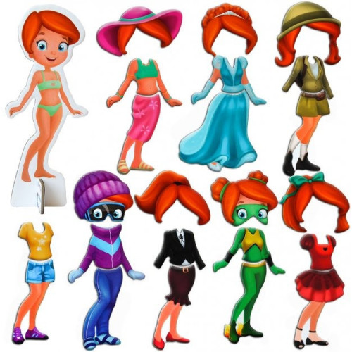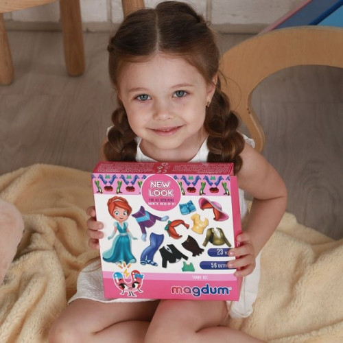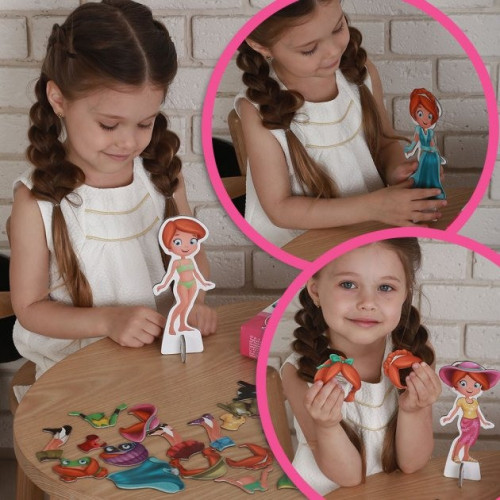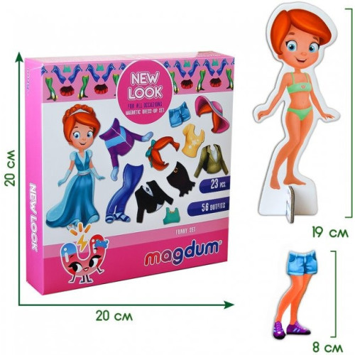 В одной коробке вы найдете куклу и 23 магнита для создания образов.