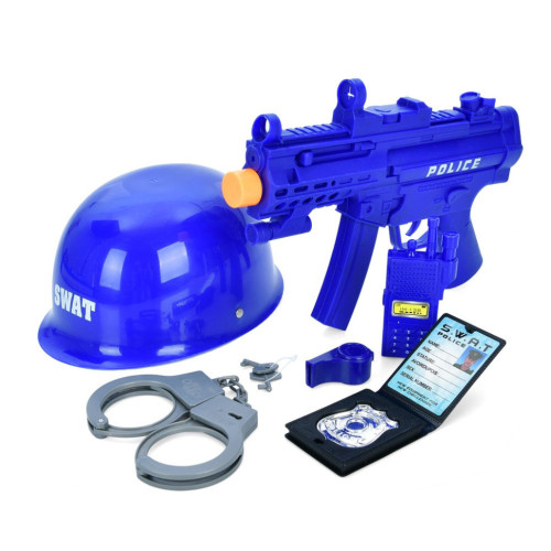 Представляем вам захватывающий набор для полицейских, включающий автомат, каску, наручники, право и значок. Эта игрушка позволит вашим детям окунуться в мир полицейских и сыграть роль героев правопорядка.