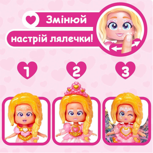 У героини 3 разных эмоции и 3 разных стиля макияжа. Просто поверните ее голову и выберите, какое настроение у крошки сегодня!