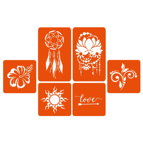 трафареты Fresh Tattoo безопасны для кожи и подходят ля нанесения временных тату всех типов: глиттер-тату, хной, бархатом, пигментом, джагуа-гелем и так далее;