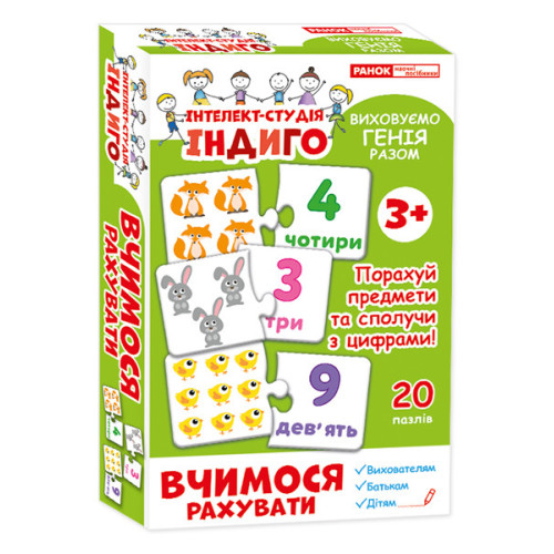 Увлекательная детская настольная игра Індиго. Вчимося рахувати (У) 13109075 от интеллект-студии представлена в серии наборов с пазлами и магнитными карточками. Вашему крохе предстоит решать задачи, которые представлены в игровой форме. Такое времяпровождение способствует лучшему запоминанию цифр, форм, цветов, фигур, а также органов человека. Наборы из обновленной обучающей коллекции дают возможность легко научиться считать, решать математические задачи, развить умение рисовать шаг за шагом. Интересный, полезный набор о строении тела человека с детства приучит ребенка заботиться о своем организме. Игра полезна для постепенного формирования образного, творческого и пространственного мышления, развития интеллекта, навыков памяти, внимания и зрительного восприятия. Выполняя задания из игры, Ваш кроха будет расширять словарный запас, научится правильному произношению. Такое развлечение помогает в совершенствовании мелкой моторики и точности, тренировки ассоциативного мышления и цветового восприятия. Набор включает в себя 20 интересных пазлов и подробную инструкцию.