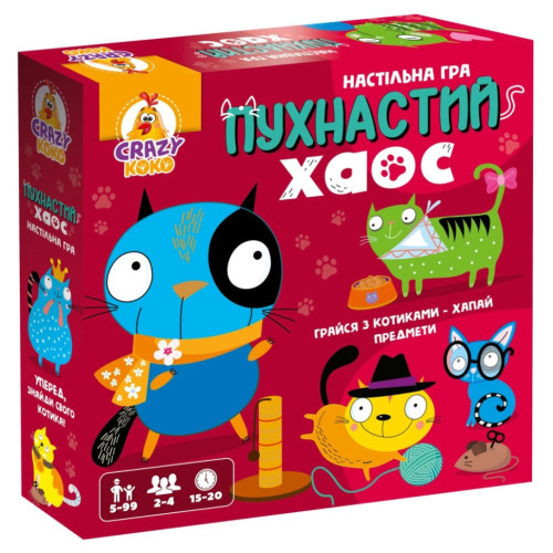 Настольная игра "Пушистый хаос" - это веселая и динамичная игра на скорость, внимательность и реакцию. Озорные котята устроили настоящий беспорядок, и теперь игроки должны быстро находить нужные предметы, чтобы навести порядок.