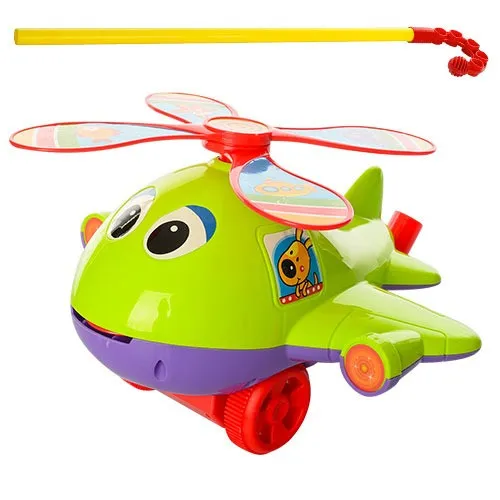Каталка Вертолет на палке будет интересна деткам, которые только научились ходить или ходят давно. Каталочка яркая и привлекает малыша. Размер 41см. Вертолет со звуком, при движении вращаются винты и высовывается язык.