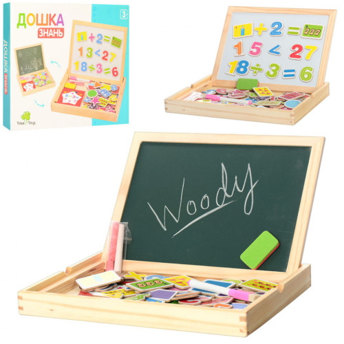 Многофункциональная, невероятно полезная деревянная игрушка Досточка MD 0694, дополненная красивой картонной упаковкой, – это отличный подарок для деток от трех лет. С помощью доски и множества специальных, цветных фигурок Ваш кроха сможет быстро подготовиться к школе, улучшить свои навыки рисования, познакомиться с новыми названиями цветов и азами математического счета. Конструкция разработана из прочного, нетоксичного дерева, которое не имеет резких запахов, и является абсолютно гипоаллергенным. Двусторонняя досточка для рисования имеет две стороны – магнитно-маркерную для обучающих занятий с наборами или рисования маркерами на водной основе, а также белую, которая предназначена для цветных мелков. В наборе с доской предусмотрен удобный лоток-ящичек для хранения всех принадлежностей, губка для стирания надписей, магнитные фигуры и цифры. Игра рекомендована для расширения кругозора, пополнения словарного запаса, улучшения полученных навыков, развития мелкой моторики, логики и ассоциативного мышления.