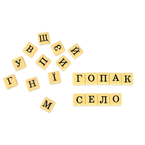 В наборе: 100 плиток с буквами, 6 карточек с номерами, инструкция.