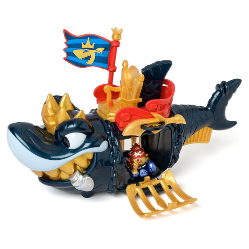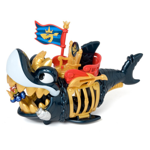 Захватывайте пиратов в акулий капкан! Нажмите на золотистый рычаг-плавник под хвостом акулы, чтобы она раскрыла пасть, и поместите фигурки пиратов-заключенных внутрь.