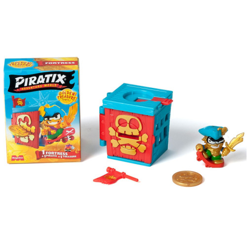 Йо-хо-хо! Хотя пираты и известные мореплаватели, но у команды PIRATIX есть еще и собственные крепости! Встречайте бесстрашных героев в игровом наборе PIRATIX серии «Golden Treasure» - КРЕПОСТЬ. Однако сначала вам придется разгадать головоломку, чтобы попасть внутрь, ведь пират так просто не даст себя найти! Ищите и выбирайте самых любимых!