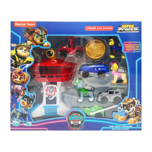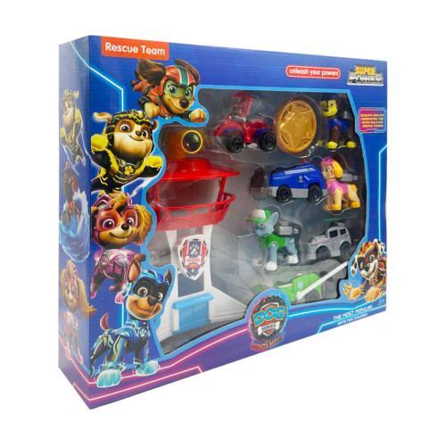 В комплект входят: башня, 4 фигурки персонажей и 3 автомобиля. Башня является центральным элементом игры и служит базой команды щенят.