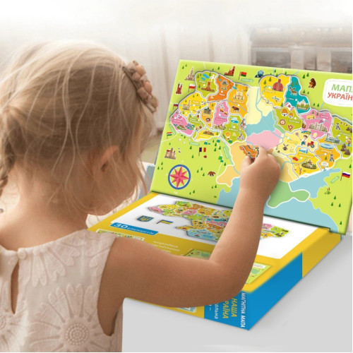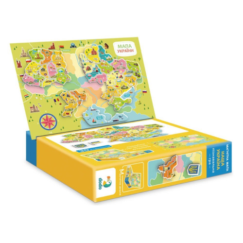 Развивающая игра Dodo «Магнитная карта Украины» - это увлекательный способ для детей узнать больше о географии родной страны! В наборе есть магнитная доска с картой Украины, 30 магнитных элементов с изображениями достопримечательностей и символов каждой области, а также шнурок, который крепится к доске и позволяет повесить карту на стену в детской комнате.