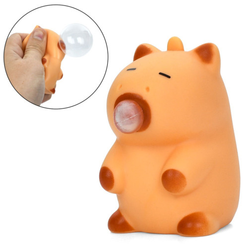 Детская антистресс-игрушка «Капибара с жвачкой» - это маленькая надувная игрушка размером 7 см с любимым многими животным - капибарой. Ребёнок может сжимать капибару и надувать её «жвачку», что делает игру весёлой и увлекательной.
