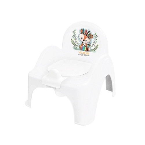 Имеет высокую спинку и резервуар - вкладыш с крышкой.