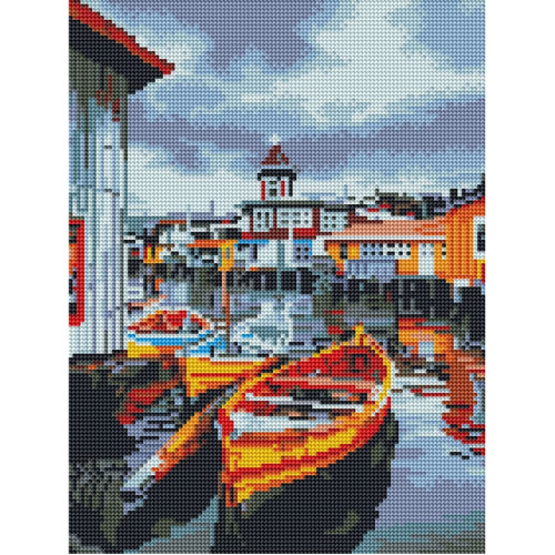 Алмазная мозаика "Лодка у городка" RDBS7014, 30х40 см