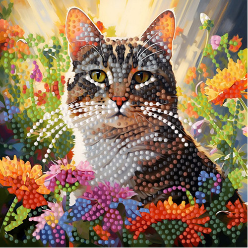 Алмазная мозаика "Кот среди цветов" ZAV1818-12, 18х18 см