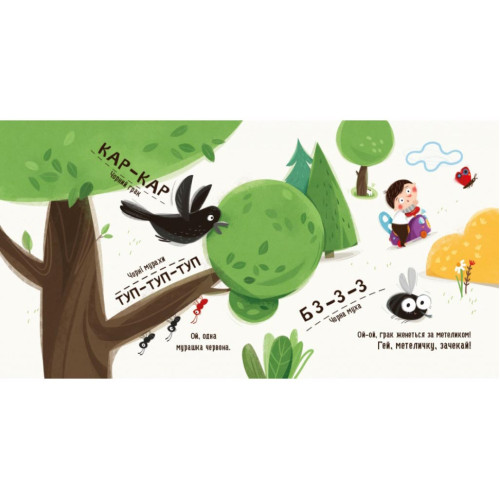 Бодьо в восторге от бабочки. Он красив и ярок! Какие цвета у бабочки? А лягушка, одуванчики, муравьи, машинка? Изучай цвета вместе с Бодьо и ищи их на иллюстрациях! А заодно открой для себя новые звуки, которые можно услышать в парке, на лугу и на строительной площадке. Играй, учись и весело проводи время!