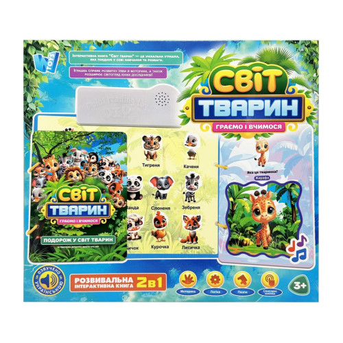 Интерактивная книга "Мир животных" - это уникальная игрушка, которая сочетает в себе обучение и развлечения. Благодаря интересным стишкам и ярким иллюстрациям ребёнок узнаёт больше о диких и домашних животных.