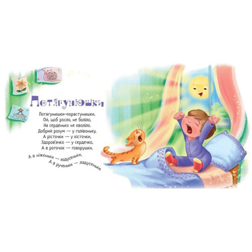 Сборник содержит 8 забавляшек на разные темы: умывание, купание, потягушки, топотушки, утешалки, "едим хорошо", игры с пальчиками, другое.