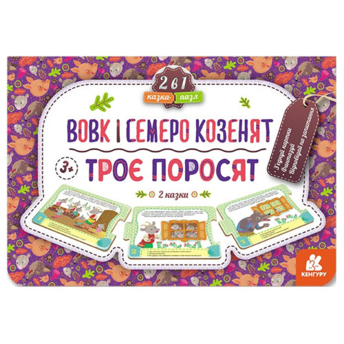 Детская Сказка-пазл "Трое поросят. Волк и семь козлят" 826005 картон, 5 страниц