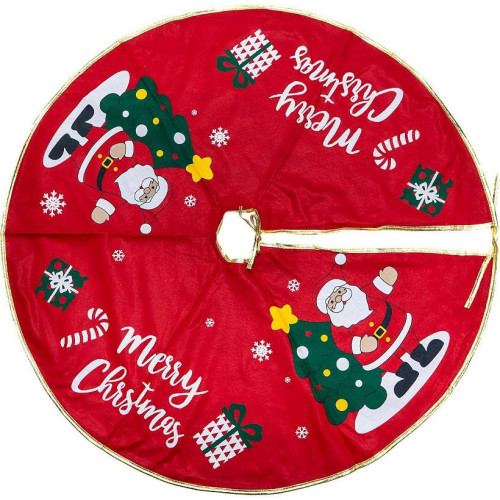 Подложка под елку диаметром 90 см — универсальный элемент новогоднего декора. Коврик имеет золотую окантовку и две завязки для удобного крепления вокруг основания елки. Придает завершенный и аккуратный вид, скрывает подставку и создает праздничную атмосферу в доме.