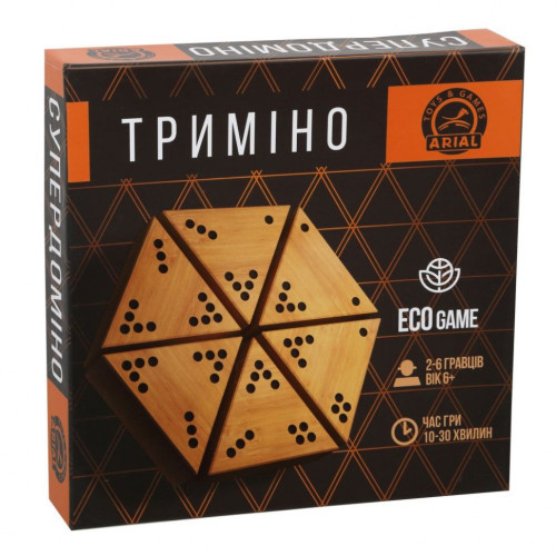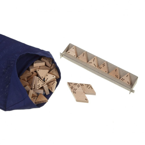 Тримино - это игра-головоломка, в которую можно сыграть, даже вшестером! Игра требует от вас развитого пространственного мышления, логики и быстрой реакции. В каждом углу фишки размещены очки в количестве от 0 до 5. Комбинации очков, понятно, не повторяются. Игроки пытаются первыми выложить на стол все свои фишки и, таким образом, завершить игру. Сделать это вовсе не просто, потому что количество очков на фишках, которые граничат, должно совпадать в обоих углах. В комплект игры входит 56 треугольных фишек изготовленных вручную из твердых пород дерева.