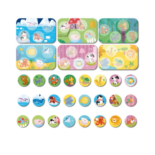 Лото DoDo Животные и их места обитания 300196 в подарочной коробке 11,5 х 17,5 х 6 см включает в себя 6 карточек и 24 фишки. В начале игры каждый участник получает карточку с изображением уникальных рисунков. Занимательный процесс увлекает на долгие часы, идеально подходит для времяпровождения в кругу семьи или друзей. Элементы настольной игры отличаются эргономичной формой, удобной для маленьких детских рук, а также не имеют острых углов, способных травмировать карапуза. Используя игровой набор, Вы сможете быстро и легко научить своего подрастающего гения новым цветам, формам, названиям предметов и даже основам математического счета. Все компоненты изготовлены из прочного, гипоаллергенного материала, безопасного для детского здоровья. Такая забава прекрасно развивает логическое мышление, воображение, тренирует ловкость пальчиков, скорость реакции и смекалку.