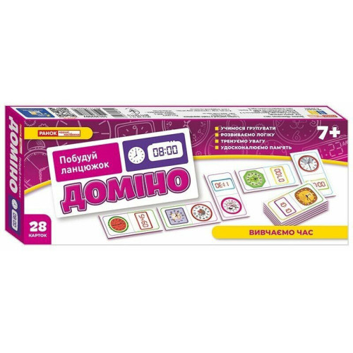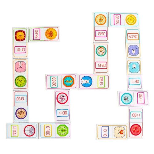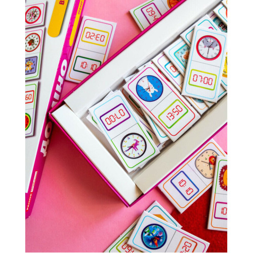 Домино "Изучаем время" - не просто игра, а увлекательный способ научить ребёнка различать время на электронных и механических часах. Благодаря ярким иллюстрациям, цветовым подсказкам и соревновательному элементу дети учатся с удовольствием и без лишнего напряжения.