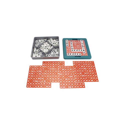 В игре 10 ярких шаблонов и 162 фишки с украинскими буквами, благодаря которым ребенок учится находить слова, тренирует внимательность и развивает словарный запас.