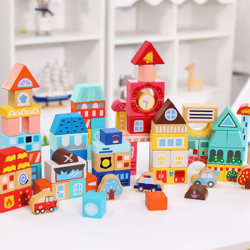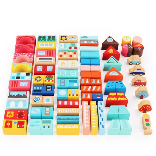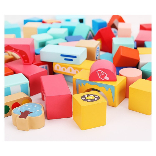 Ребёнок сможет построить свой собственный игрушечный городок. В комплект входят яркие фигурки, приятные на ощупь и изготовленные из качественной древесины. Конструктор развивает логику, моторику, воображение и навыки сортировки.