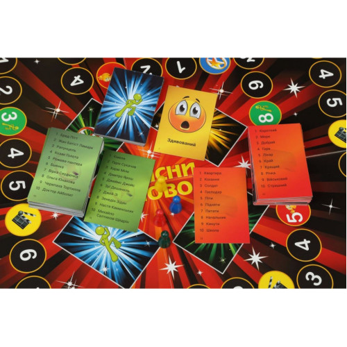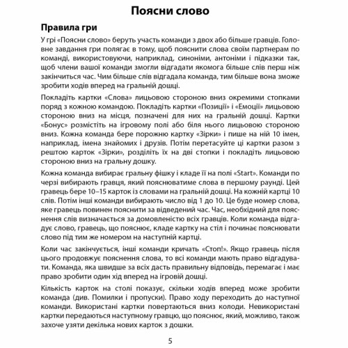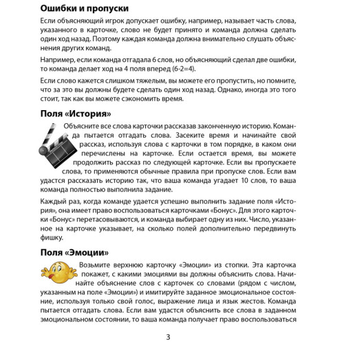 Объясняйте слова, не используя однокоренные. В комплекте игры более полутора сотен карточек, на каждой из которых по 10 слов. Возможны варианты игры с игровым полем и без него.