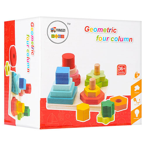 Развивающая деревянная игрушка Геометрика MD 1190 представляет собой специальную платформу, с четырьмя чопиками и 16 деревянными деталями. Все элементы различаются по размеру и геометрической форме, поэтому Ваш малыш узнает, что такое круг, квадрат, шестигранник и звезда. Вашему непоседе предлагается решить увлекательную задачу, отсортировав фигуры по форме и размеру, правильно надеть детали на штырьки. Детали игрушки Ваш маленький умник может не только нанизывать на основания, но также создавать из них всевозможные фигуры и сложные предметы. Занимательная и забавная игра «Геометрика», ориентированная на деток от 12-ти месяцев, подарит малышу много радости, самых позитивных впечатлений, новых навыков и знаний. Для создания игрового набора производитель использовал безопасное, экологически чистое сырье – натуральное дерево и красители на водной основе.